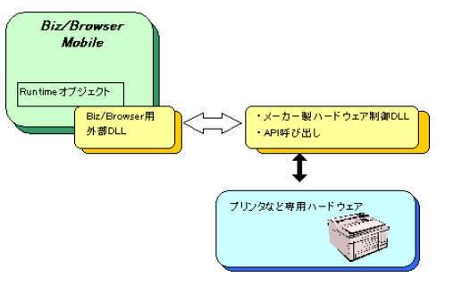 With this mechanism, it is possible to control hardware specific to mobile terminals and acquire values from Biz / Browser Mobile via an external DLL.