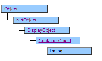 Dialog objects belong to the hierarchy as child objects of other display objects, but they appear as visually separate windows.